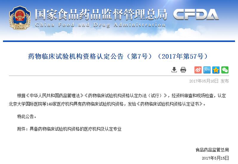 根據(jù)《藥物臨床試驗(yàn)質(zhì)量管理規(guī)范》、《藥品注冊(cè)管理辦法》《藥物臨床試驗(yàn)機(jī)構(gòu)資格認(rèn)定辦法》,經(jīng)資料審查和現(xiàn)場(chǎng)檢查,廈門(mén)大學(xué)附屬?gòu)B門(mén)眼科中心于2017年5月15日由國(guó)家食品藥品監(jiān)督管理總局發(fā)布的《藥物臨床試驗(yàn)機(jī)構(gòu)資格認(rèn)定公告》(第7號(hào))(2017年第57號(hào)),通告我院藥物臨床試驗(yàn)機(jī)構(gòu)順利通過(guò)國(guó)家GCP資格認(rèn)定,予以頒發(fā)《藥物臨床試驗(yàn)機(jī)構(gòu)資格認(rèn)定證書(shū)》。