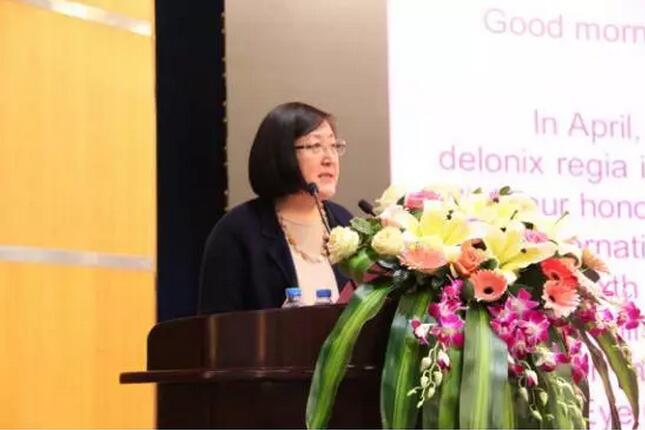 廈門(mén)大學(xué)附屬?gòu)B門(mén)眼科中心眼外傷學(xué)科帶頭人蔡錦紅主任在做“脈絡(luò)膜上腔出血的臨床治療選擇”報(bào)告。