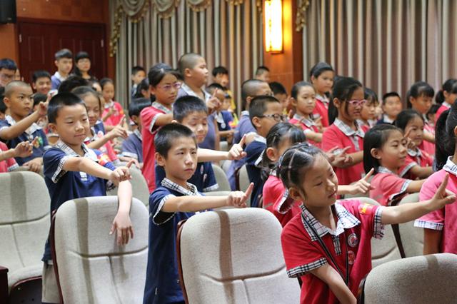 羅媛醫(yī)師帶領(lǐng)小學(xué)生們做“眼肌操”