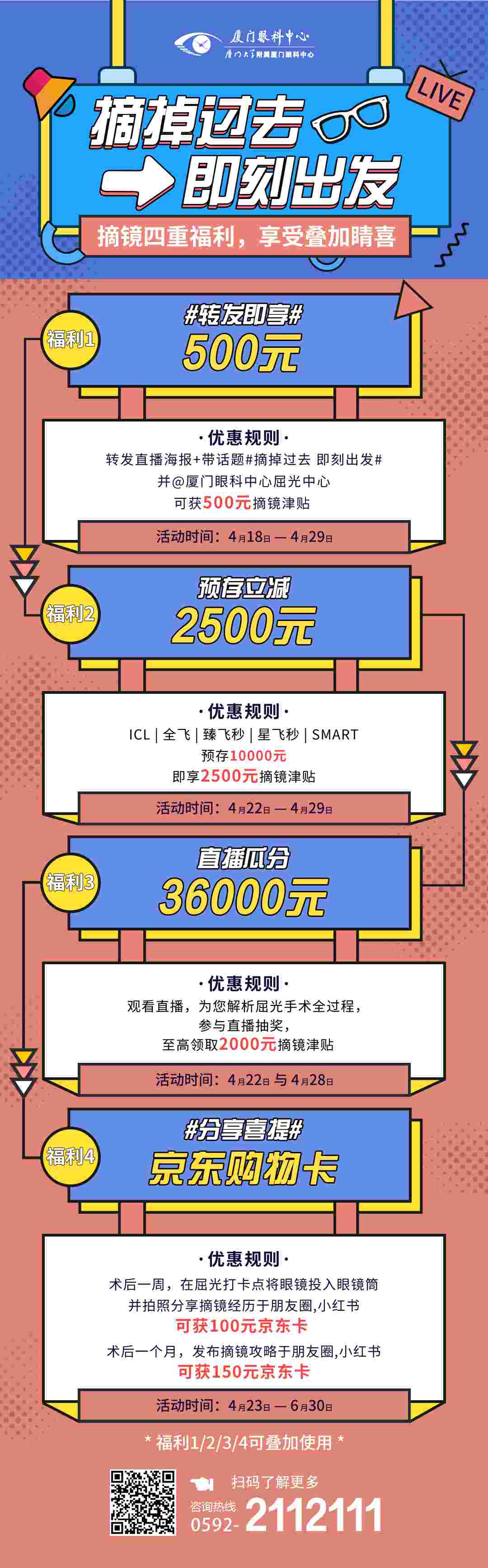 轉(zhuǎn)發(fā)直播海報+帶話題#摘掉過去 即刻出發(fā)#,即可獲得500元摘鏡津貼。