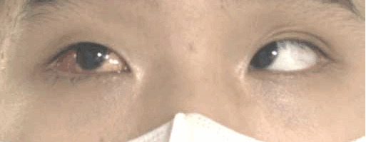 術(shù)前患者右眼嚴重內(nèi)斜、外轉(zhuǎn)受限