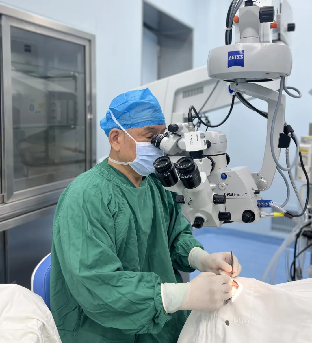 當天下午,吳護平院長接診了陳伯伯。經(jīng)過檢查確認,陳伯伯結(jié)膜有輕微充血,角膜上皮有缺損,角膜上有不規(guī)則灰白色混濁,深度達到基質(zhì)層,視力基本只剩光感,屬于角膜內(nèi)皮營養(yǎng)不良。完善所有的術(shù)前檢查,當天傍晚,陳伯伯就進了手術(shù)室,由吳護平院長親自操刀手術(shù)順利完成角膜移植手術(shù)。