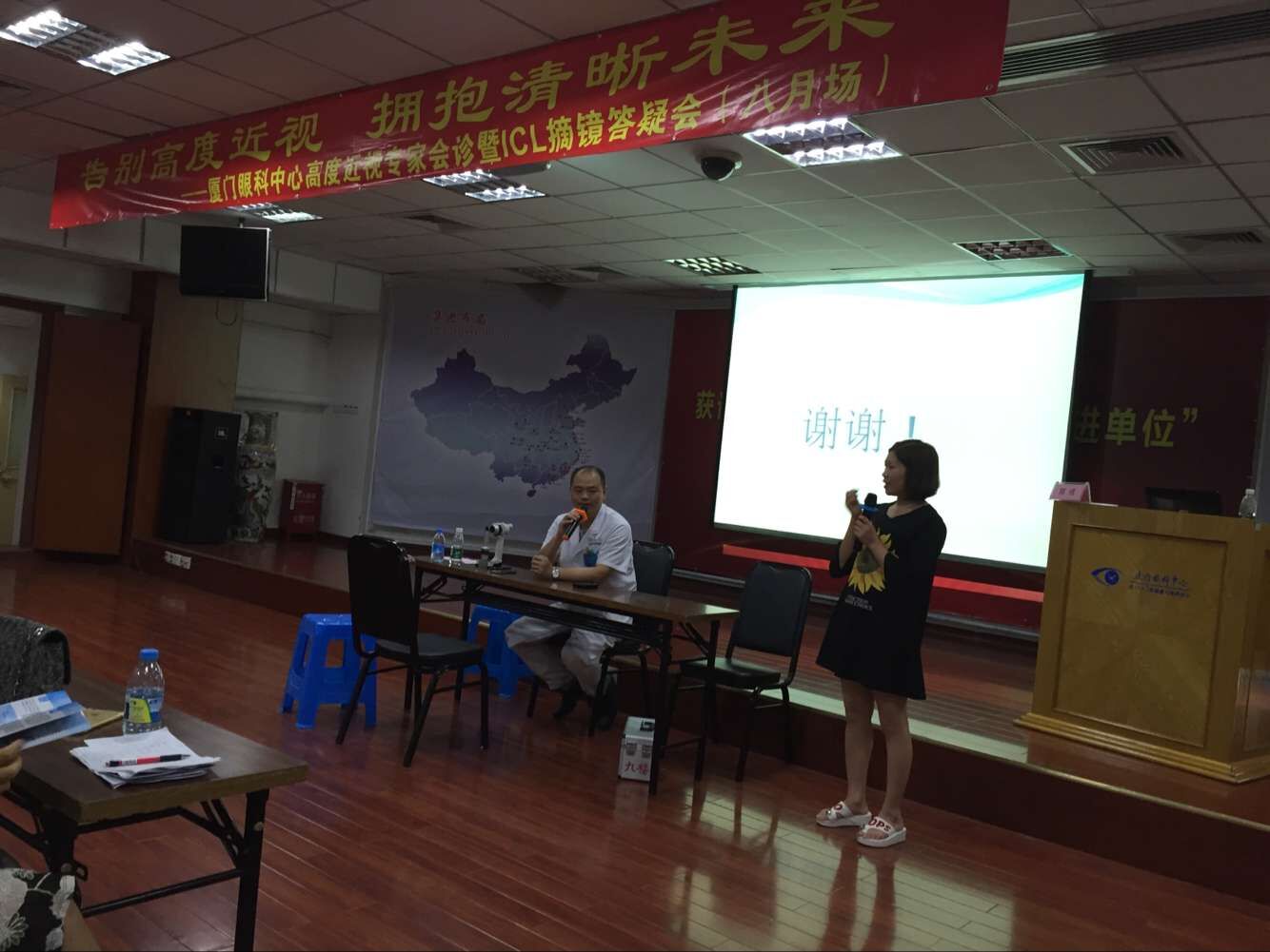 演講結(jié)束后,有兩位做過高度近視ICl晶體植入術(shù)的患者于大家分享經(jīng)驗(yàn)。兩位都是女士,一位做的的T