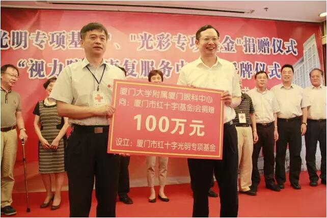今年7月,廈門眼科中心向廈門市紅十字會(基金會)和廈門市光彩事業(yè)促進會共捐贈200萬元,成立光明專項基金,用于貧困眼疾患者的救助工作。同時各科室和醫(yī)院員工也會主動為貧困患者減免費用和捐款,為徘徊在光明與黑暗邊緣的貧困眼疾患者創(chuàng)造光明的希望。