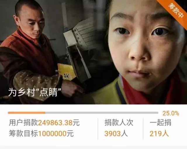 線上捐款將以騰訊大閩網(wǎng)捐贈(zèng)的20萬元善款作為起始善款,邀請(qǐng)全民參與籌集80萬“點(diǎn)睛”基金,總計(jì)100萬善款將專用于“為鄉(xiāng)村點(diǎn)睛”項(xiàng)目的配鏡、眼病患者治療及志愿者交通費(fèi)、工作簡餐費(fèi)等,治病補(bǔ)助費(fèi)用將按照病患的實(shí)際情況向網(wǎng)友公布。目前已有近4000人參與,捐款總額已近25萬元人民幣。