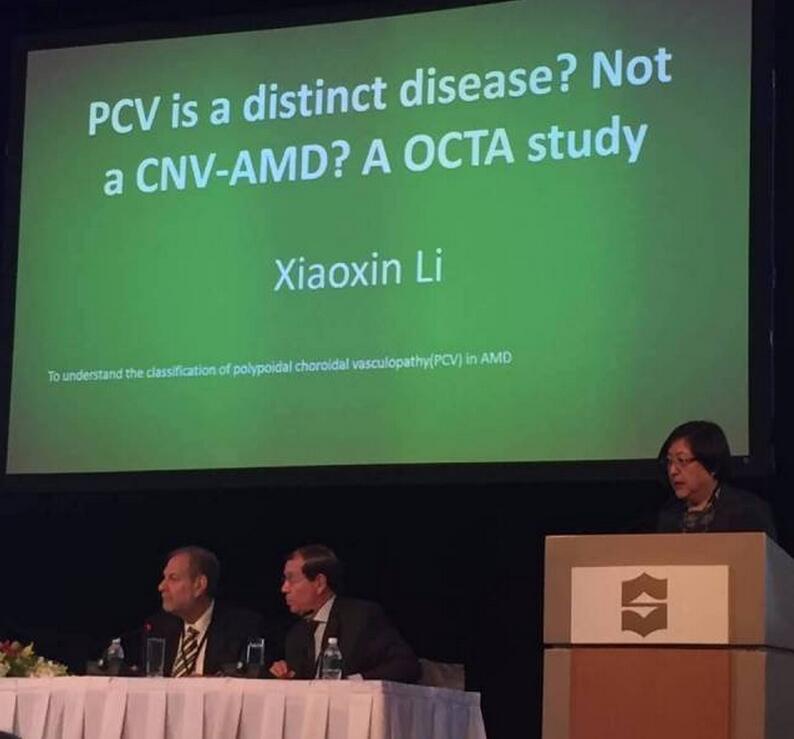 黎曉新在會上分享了關(guān)于脈絡(luò)膜息肉樣病變與老年黃斑變性為主題的內(nèi)容