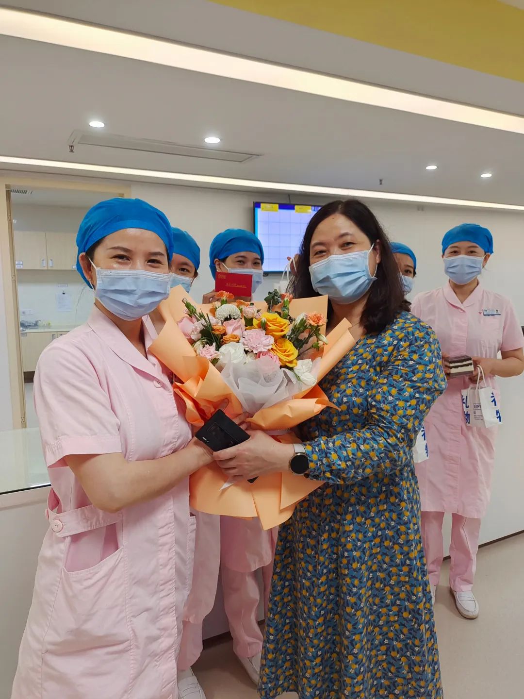 護(hù)理人員非常感謝院領(lǐng)導(dǎo)、護(hù)理部及工會對大家的節(jié)日祝福,喜笑顏開地與領(lǐng)導(dǎo)們合影留念,到處充滿了節(jié)日的喜慶氣氛。院領(lǐng)導(dǎo)的每一句叮囑,都體現(xiàn)了對臨床一線護(hù)理人員的濃濃關(guān)愛,激勵著在場每一位護(hù)士。