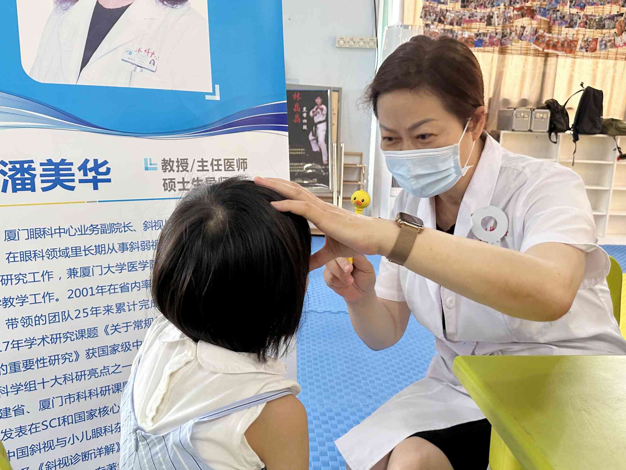 近日,為守護(hù)特需兒童的光明未來(lái),在廈門市「愛(ài)心廈門」建設(shè)工作領(lǐng)導(dǎo)小組辦公室及海滄區(qū)殘疾人聯(lián)合會(huì)的指導(dǎo)下,廈門眼科中心「看見(jiàn)幸?!寡劢】倒骓?xiàng)目志愿者服務(wù)隊(duì)在業(yè)務(wù)副院長(zhǎng)、斜視與小兒眼病中心學(xué)科帶頭人潘美華教授的帶領(lǐng)下,來(lái)到了海滄區(qū)小海星特殊兒童服務(wù)中心,為特需兒童們開(kāi)展了一場(chǎng)特殊的眼健康公益篩查診療活動(dòng)。