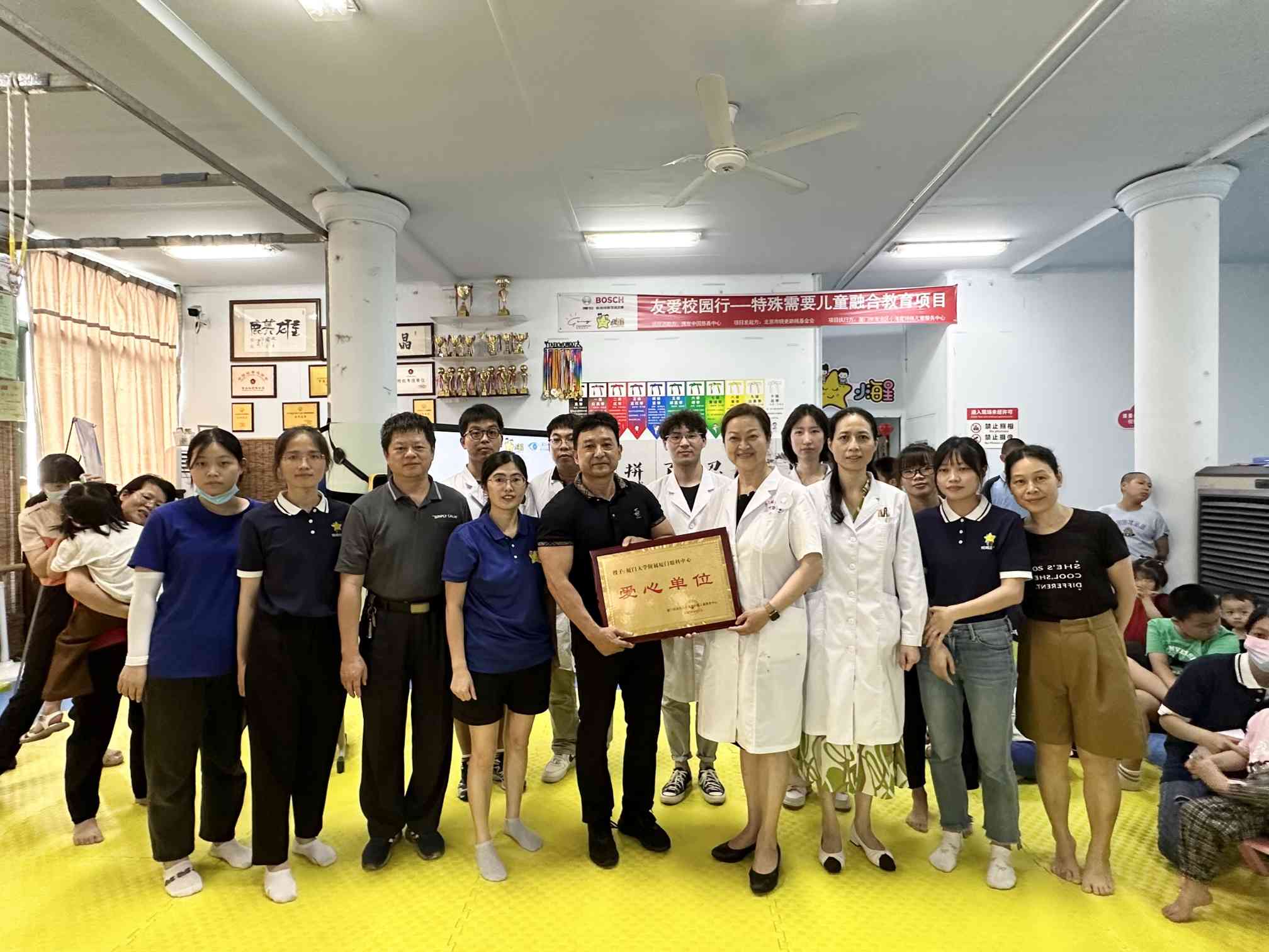 活動(dòng)過(guò)程中,海滄區(qū)殘疾人聯(lián)合會(huì)周偉儒理事長(zhǎng)、廈門市海滄區(qū)小海星特殊兒童服務(wù)中心理事長(zhǎng)梁潔等人代表授予醫(yī)院“愛(ài)心單位”的稱號(hào),并對(duì)醫(yī)院的善舉給予了真誠(chéng)的感謝。