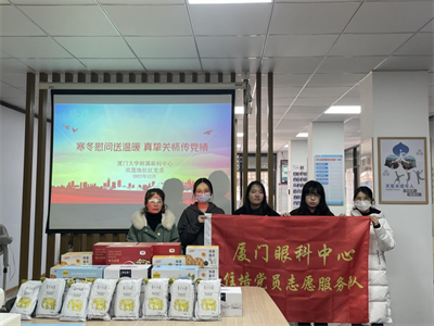 為了扎實(shí)開展好學(xué)習(xí)貫徹習(xí)近平新時(shí)代中國特色社會主義思想主題教育,牢牢把握“三個(gè)實(shí)實(shí)在在”的重要要求,用實(shí)事暖民生,將溫暖送到百姓心坎上。12月22日下午,廈門眼科中心住培黨員志愿服務(wù)隊(duì)在廈門大學(xué)附屬廈門眼科中心黨總支的組織下,前往雙蓮池社區(qū)開展“寒冬慰問送溫暖,寒冬善行暖民心”入戶走訪慰問活動。