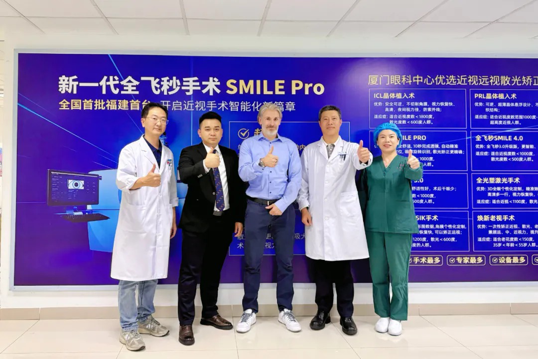5月12日,德國(guó)蔡司屈光技術(shù)專家Christian Gruenwald到訪廈門(mén)眼科中心。此次訪問(wèn)主要聚焦新一代機(jī)器人全飛秒VISUMAX 800設(shè)備的落地應(yīng)用,雙方就技術(shù)細(xì)節(jié)、臨床實(shí)操與參數(shù)解析展開(kāi)深入交流,為眼科前沿技術(shù)的創(chuàng)新發(fā)展注入新動(dòng)能,標(biāo)志著屈光手術(shù)正式邁入“智能機(jī)器人輔助”的新紀(jì)元。