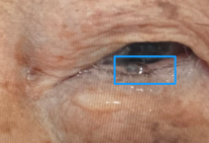 檢查時(shí)高麗花主治醫(yī)師發(fā)現(xiàn),這個(gè)不到一厘米大小的黑點(diǎn)長在陳阿婆左眼的眼瞼下面,黑色的邊緣不清晰,肉眼已經(jīng)看得見表面有些破皮。根據(jù)多年的臨床經(jīng)驗(yàn)來診斷,初診判定為基底細(xì)胞癌。