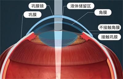 戴鞏膜鏡時(shí),能使鏡片隔著球結(jié)膜完全搭在鞏膜(白眼球上),在鏡片后表面與角膜前表面之前形成一個(gè)幾近封閉的液體儲(chǔ)留區(qū)(儲(chǔ)留生理鹽水)。